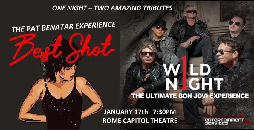 For questions and ticket information please visit https://www.romecapitol.com/event/1-wild-night-the-bon-jovi-experience-best-shot-the-pat-benatar-experience/