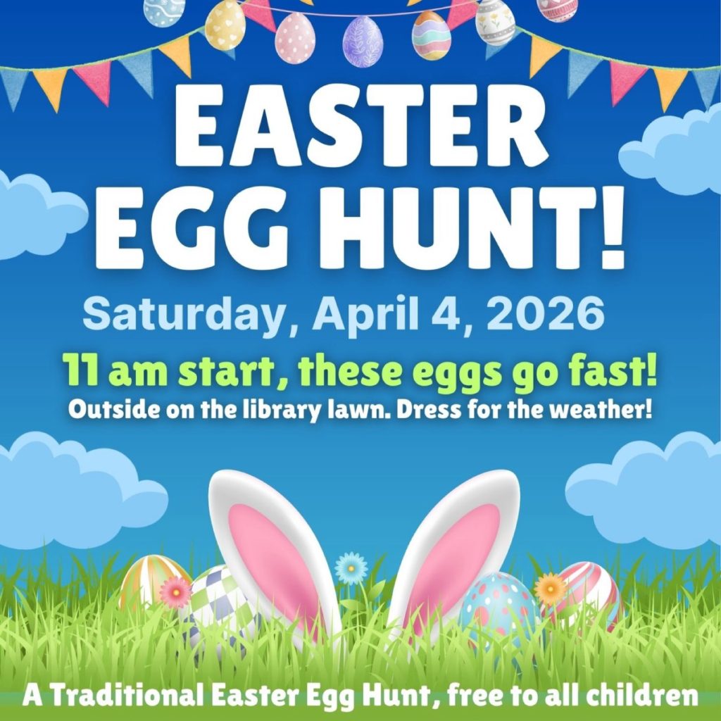 This free event is open to all. Children will receive bunny ears and a basket at check-in before heading out to gather more than 1,000 colorful plastic eggs hidden across the library lawn. Afterward, eggs can be exchanged for prizes, including sidewalk chalk, jump ropes, cat’s cradle sets, and other toys that encourage outdoor play. Local craftsman and woodworker Dennis Kenney has also contributed handcrafted puzzles designed to be lasting keepsakes.