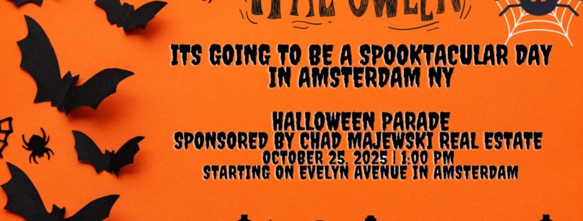 The City of Amsterdam is pleased to announce we will be hosting our Annual Halloween Parade sponsored by Chad Majewski- Real Estate on Saturday, October 25th. The Parade will begin at 1pm on Guy Park Avenue.
