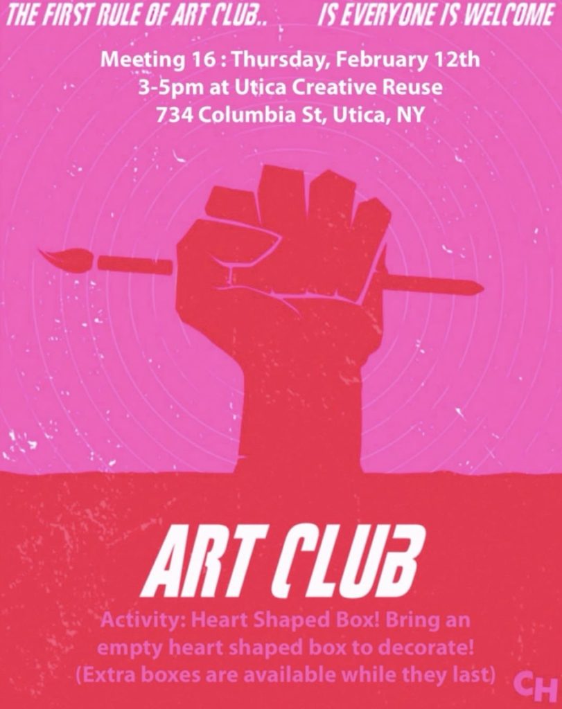 Bring an empty box to decorate for Valentine’s Day! All decorating materials will be available, but you’re welcome to bring your own if you’d like to.