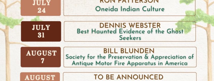 On Thursday, July 24 at 5 pm, Ron Patterson will speak on the Oneida Indian Nation and Culture.