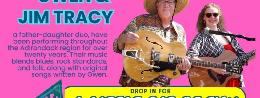 Jim and Gwen, a father-daughter duo, have been performing throughout the Adirondack region for over twenty years. Their music blends blues, rock standards, and folk, along with original songs written by Gwen.