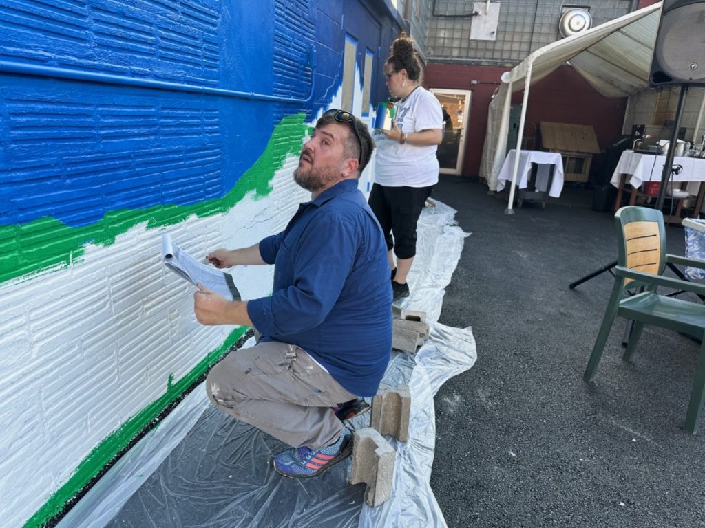 Justin Como as Lead Artist at the Stone Soup American Bistro and Beer Garden Mural Event.